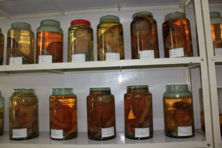 二重体児や頭が極端に大きいもの、小さいものなど。小さな部屋の中には、たくさんの胎児が瓶に詰められていました。