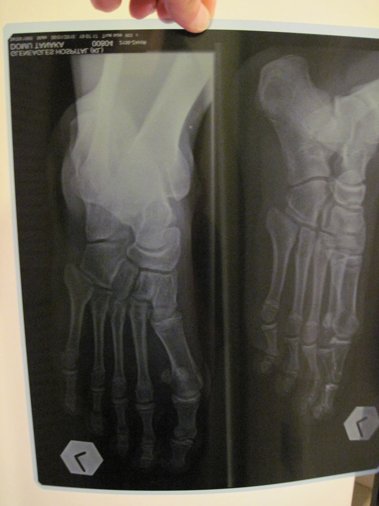 いろいろ大変でしたが、ひびもなく単なる打撲で2・3日すれば大丈夫とのこと。とにかくひと安心でした。ただ、日本に帰っても腫れが引かず、痛むようだったら医者に行ってくれとのことでした。