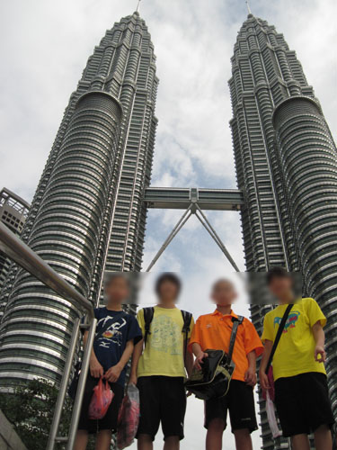 85fd3427.jpg降りたところがここ。KLCCのペトロナスツインタワーです。顔はぼかしてありますが、元気なことが分かると思います。