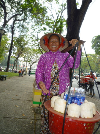 下はヤシの実と水を売っている人、何も買わないで写真だけとってしまってごめんなさい。