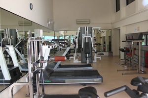 右の写真はトレーニングルームで、エアコン完備なので、快適なトレーニングができます。